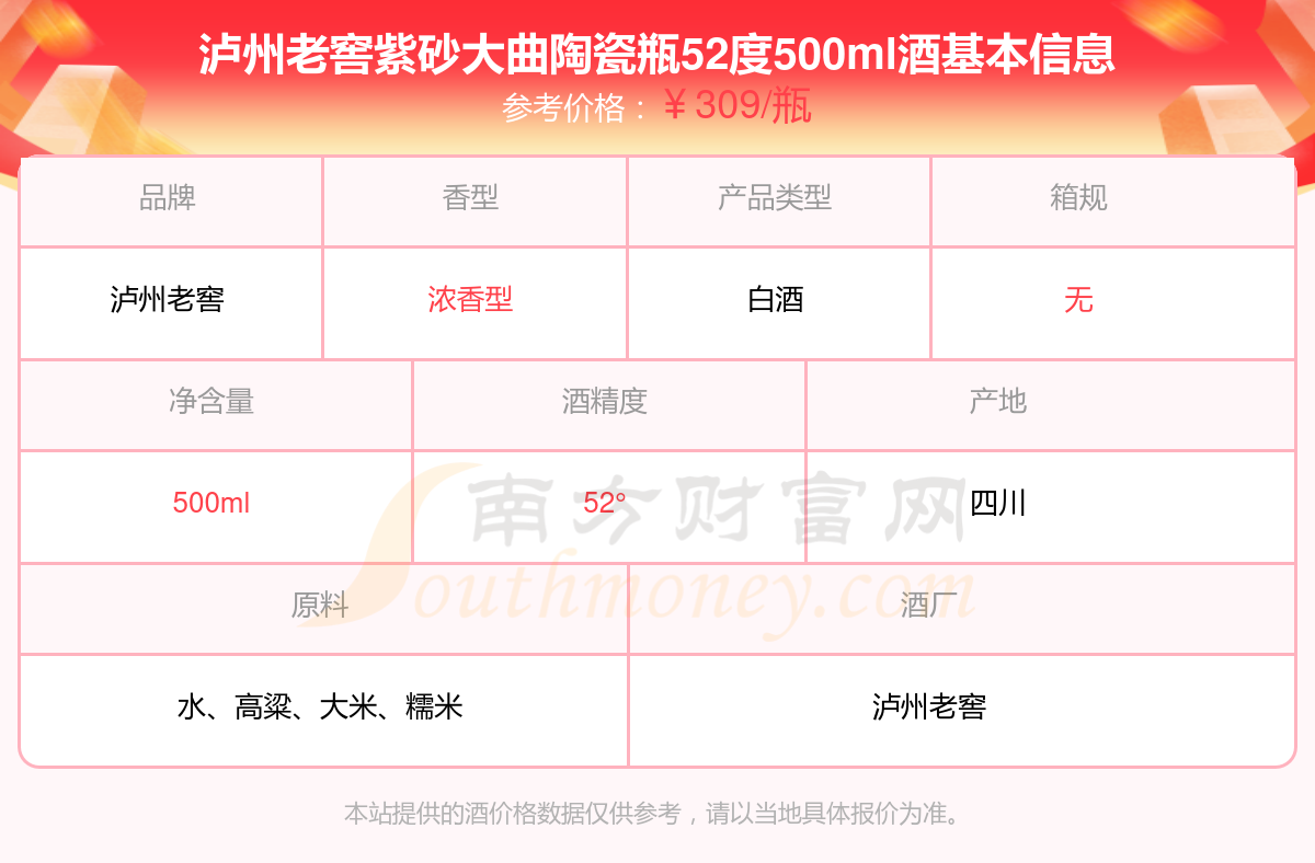 瀘州老窖紫砂大曲陶瓷瓶52度500ml基本信息