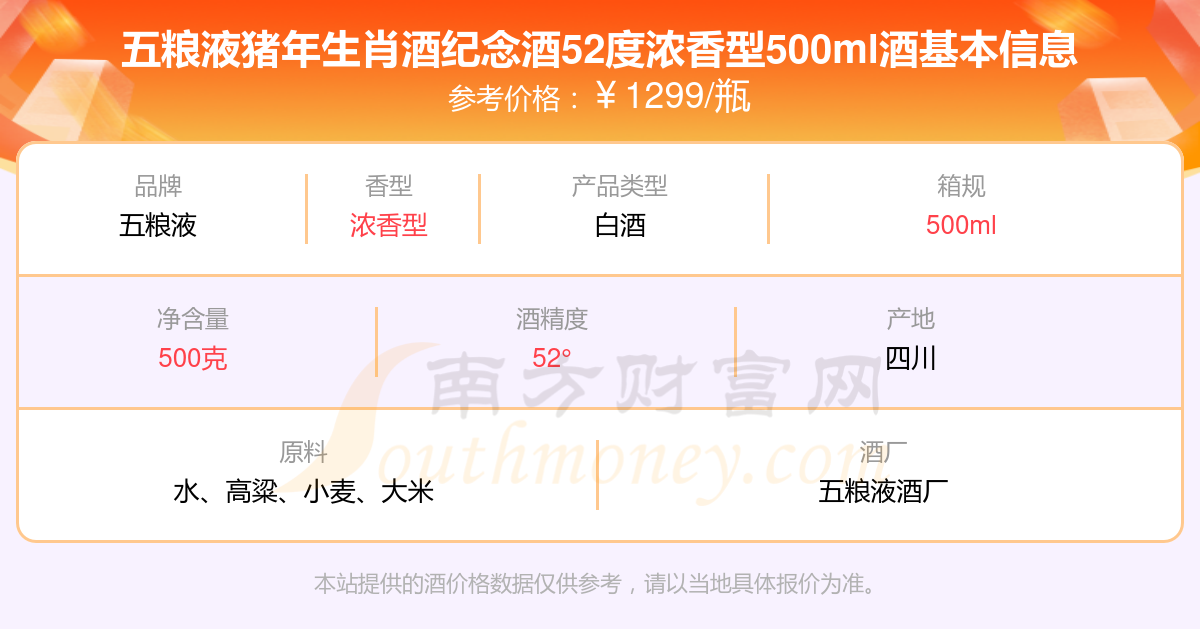 五糧液豬年生肖酒紀(jì)念酒52度濃香型500ml基本信息