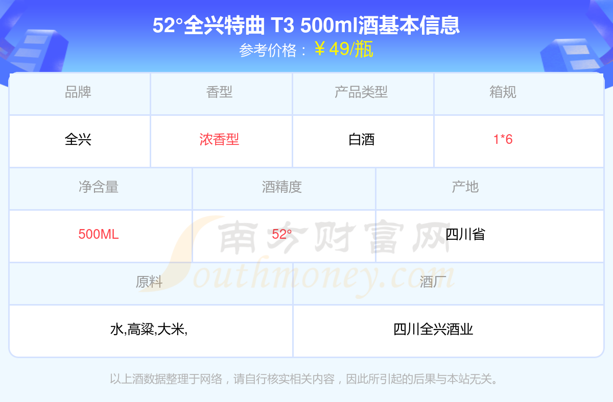 52°全興特曲 T3 500ml基本信息