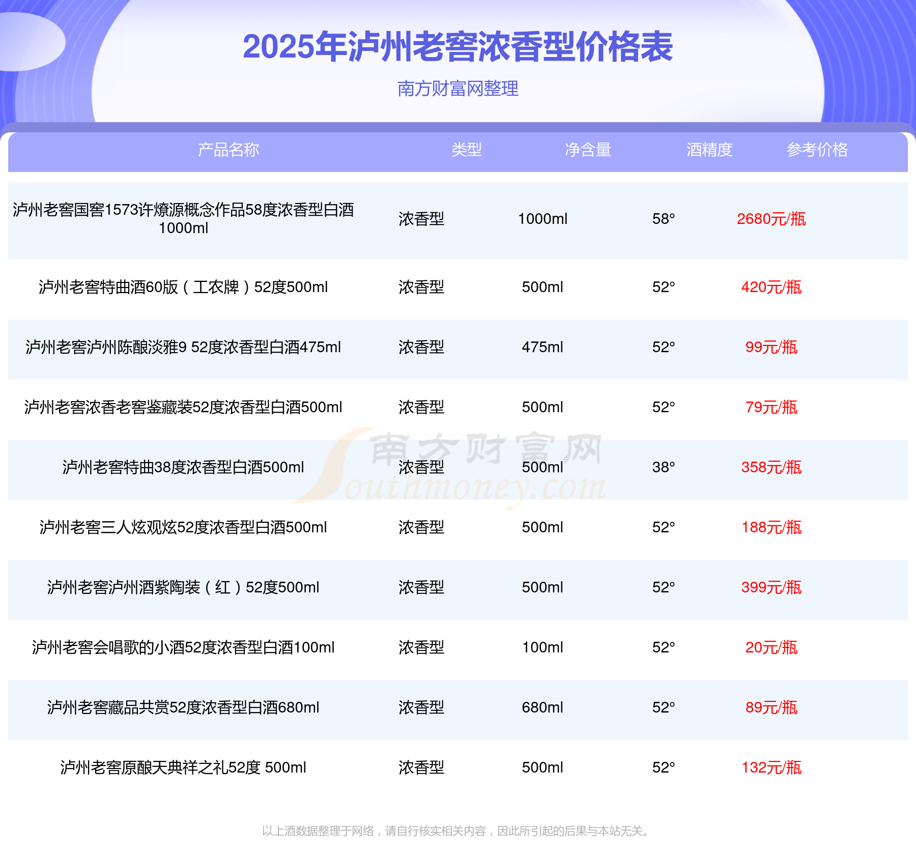 瀘州老窖濃香型酒最新價(jià)格2025:
