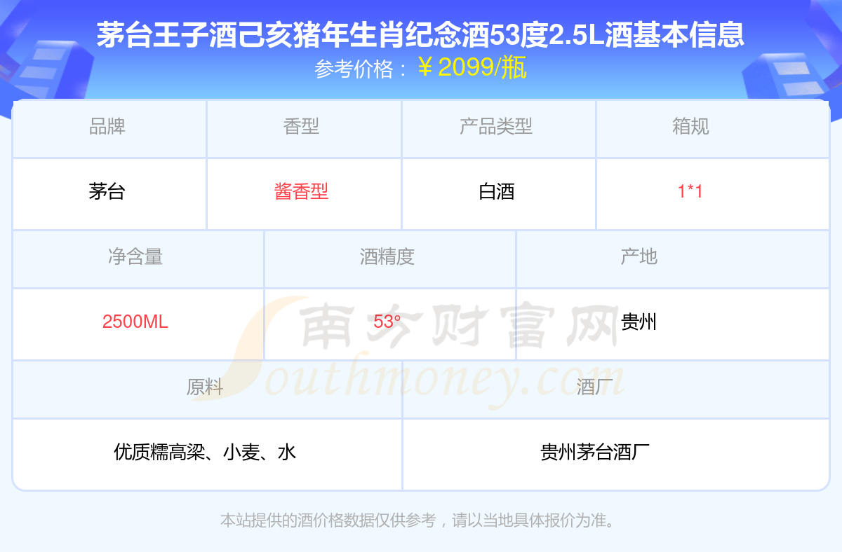 茅臺(tái)王子酒己亥豬年生肖紀(jì)念酒53度2.5L基本信息