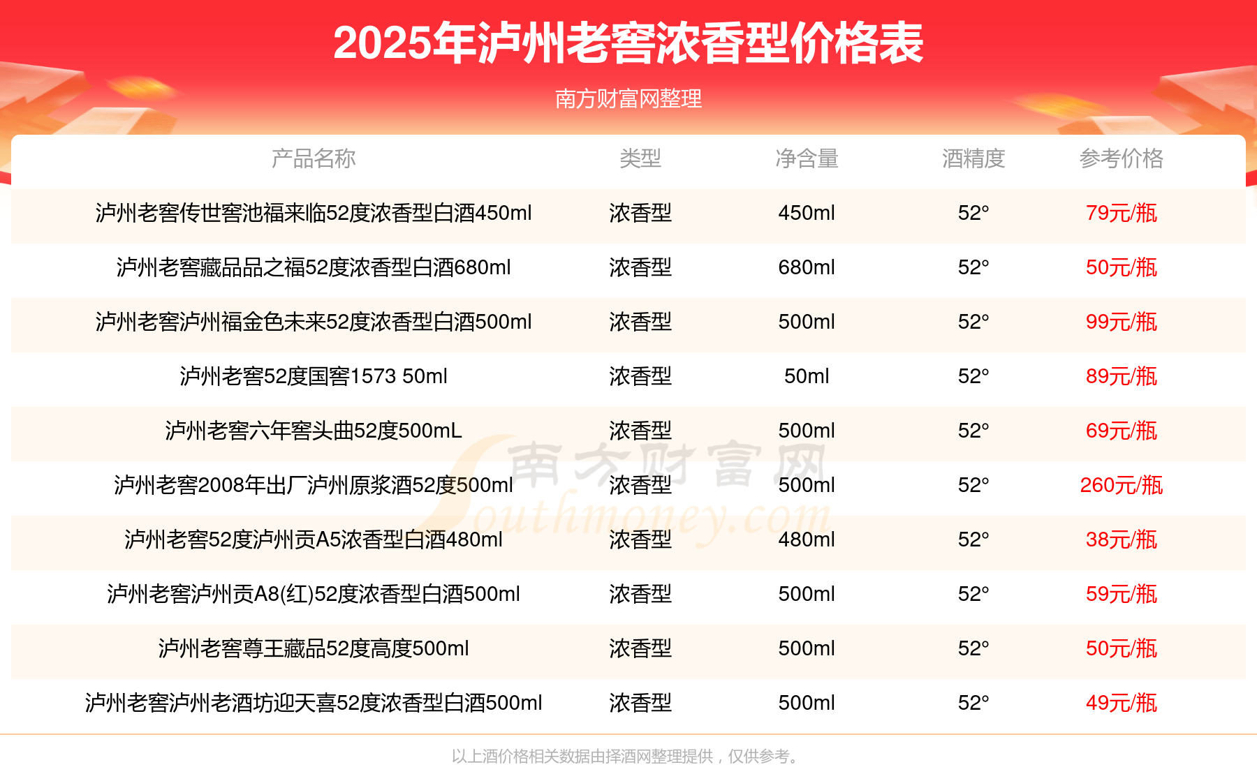 瀘州老窖濃香型酒最新價(jià)格2025: