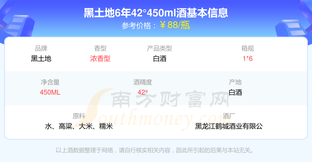 黑土地6年42°450ml基本信息