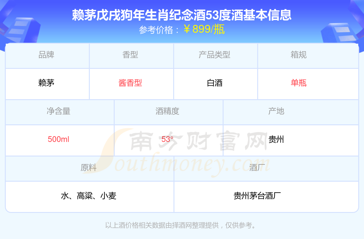 賴茅戊戌狗年生肖紀(jì)念酒53度基本信息