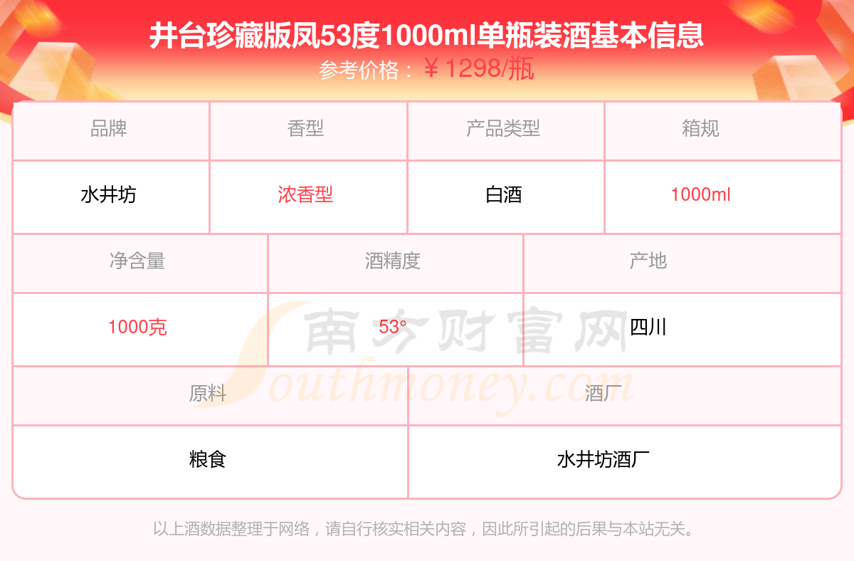 井臺(tái)珍藏版鳳53度1000ml單瓶裝基本信息