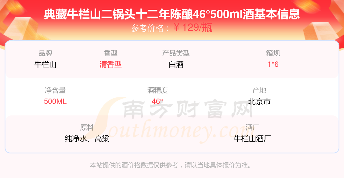 典藏牛欄山二鍋頭十二年陳釀46°500ml基本信息