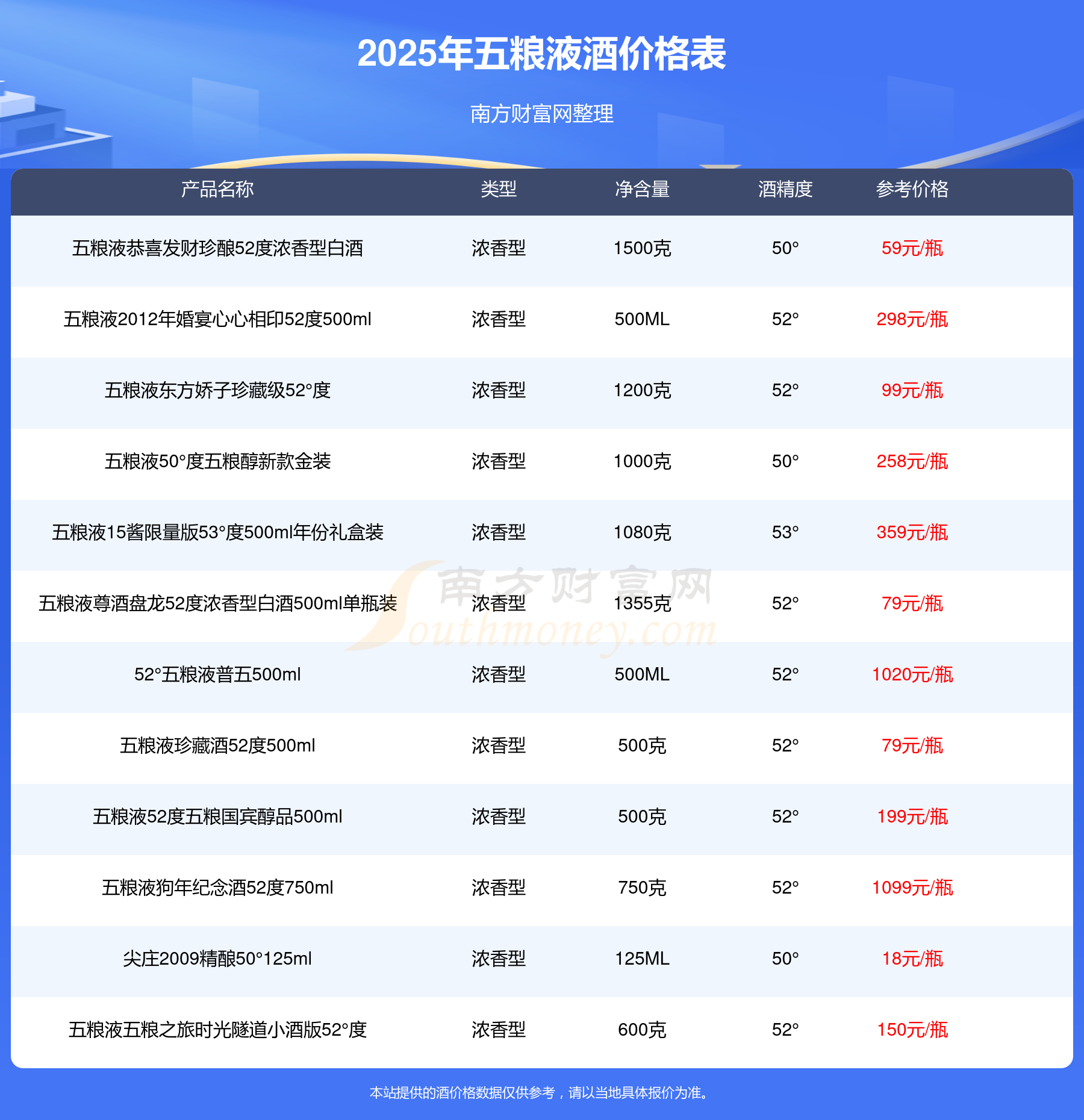 2025年,五糧液酒價格最高的是五糧液百年世博世紀(jì)榮耀紀(jì)念酒60°999ml,參考價26980元,最低的是五糧液干一杯小瓶46度,參考價16元,價格高低差為26964元。