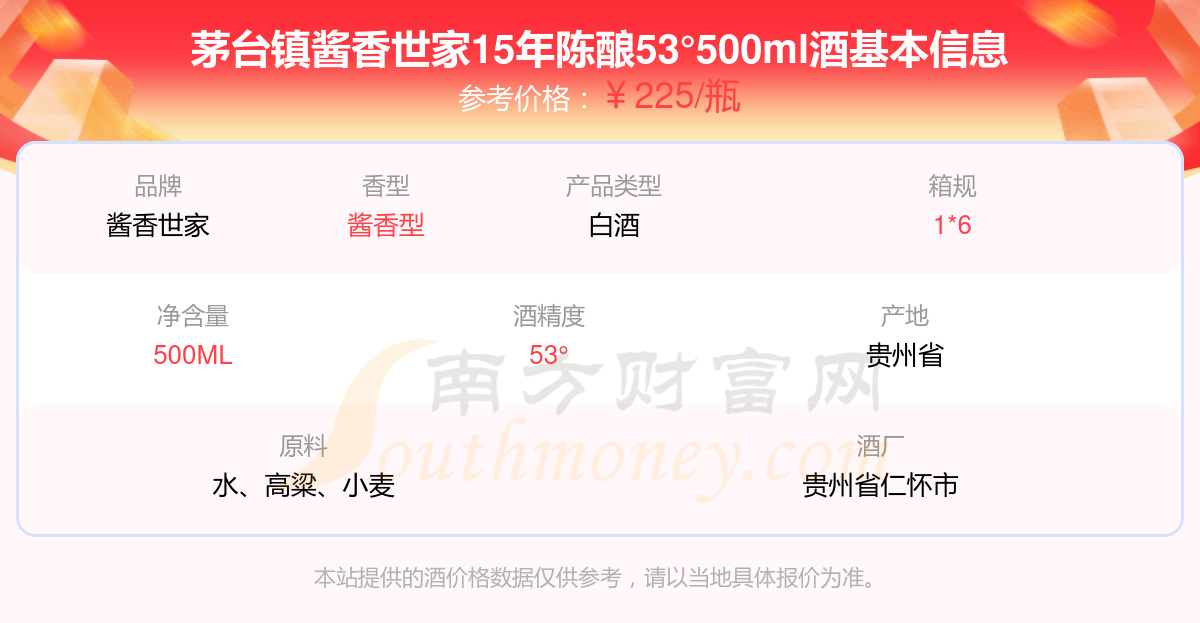 茅臺(tái)鎮(zhèn)醬香世家15年陳釀53°500ml基本信息
