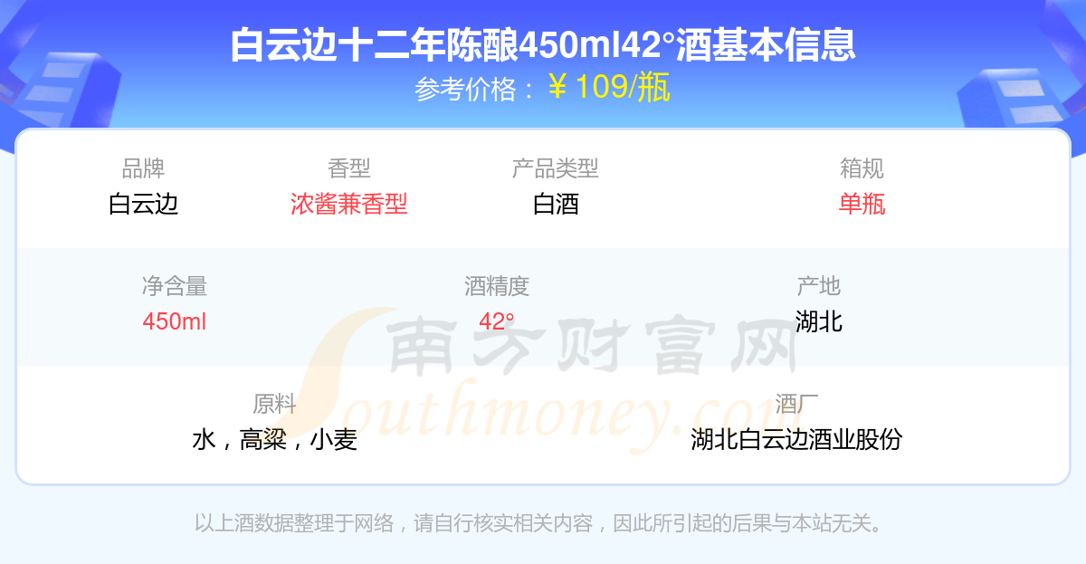白云邊十二年陳釀450ml42°基本信息