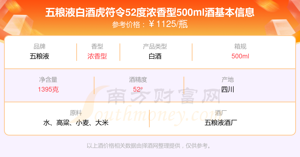 五糧液白酒虎符令52度濃香型500ml基本信息