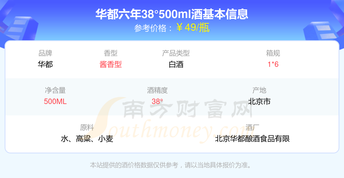 華都六年38°500ml基本信息