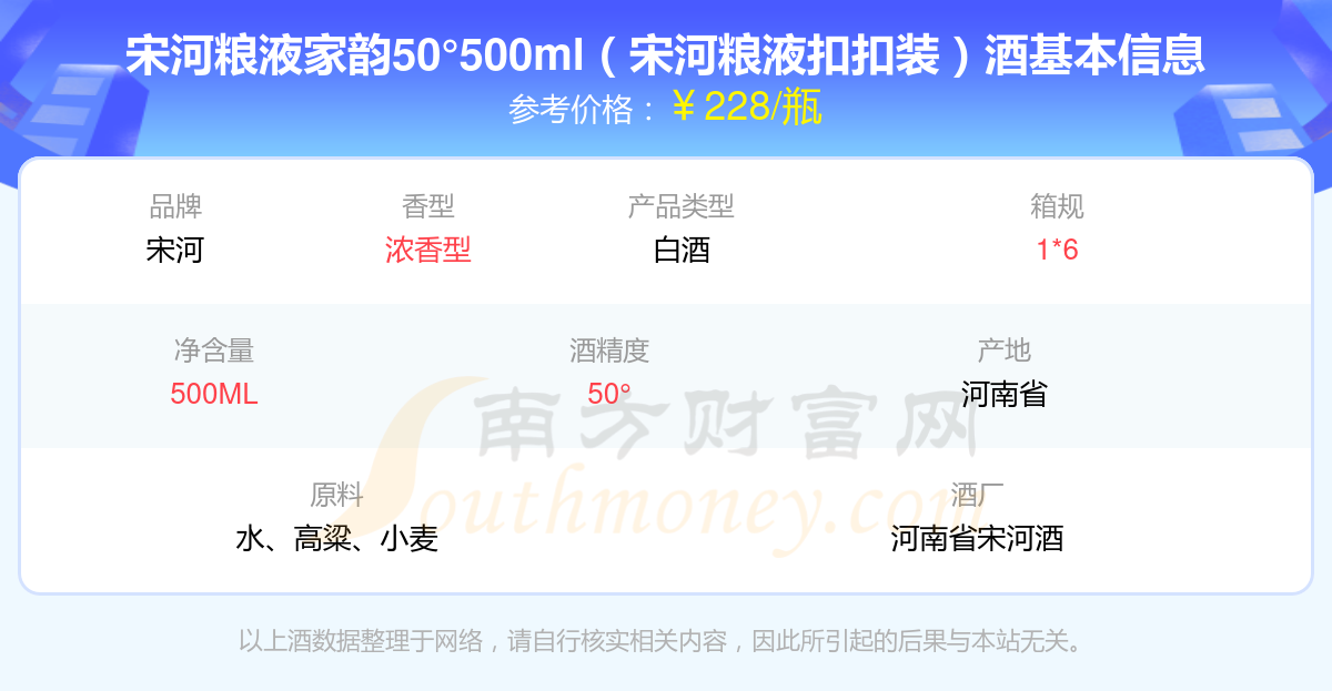 宋河糧液家韻50°500ml(宋河糧液扣扣裝)基本信息