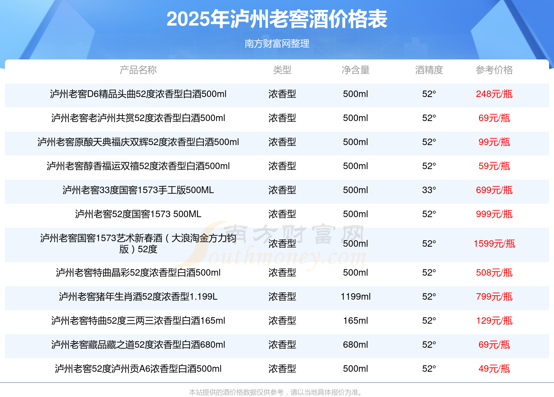 2025年瀘州老窖酒瀘州老窖國(guó)窖1573春釀鼠兆豐年E 55度、瀘州老窖國(guó)窖1573生命中的那壇酒55度014、瀘州老窖國(guó)窖1573春釀鼠兆豐年A 55度、瀘州老窖國(guó)窖1573生命中的那壇酒55度013濃香型白酒1000ml等最新價(jià)格如下:瀘州老窖國(guó)窖1573春釀鼠兆豐年E 55度參考價(jià)17999元/瓶、瀘州老窖國(guó)窖1573生命中的那壇酒55度014參考價(jià)9999元/瓶、瀘州老窖國(guó)窖1573春釀鼠兆豐年A 55度參考價(jià)5088元/瓶、瀘州老窖國(guó)窖1573生命中的那壇酒55度013濃香型白酒1000ml參考價(jià)4988元/瓶。