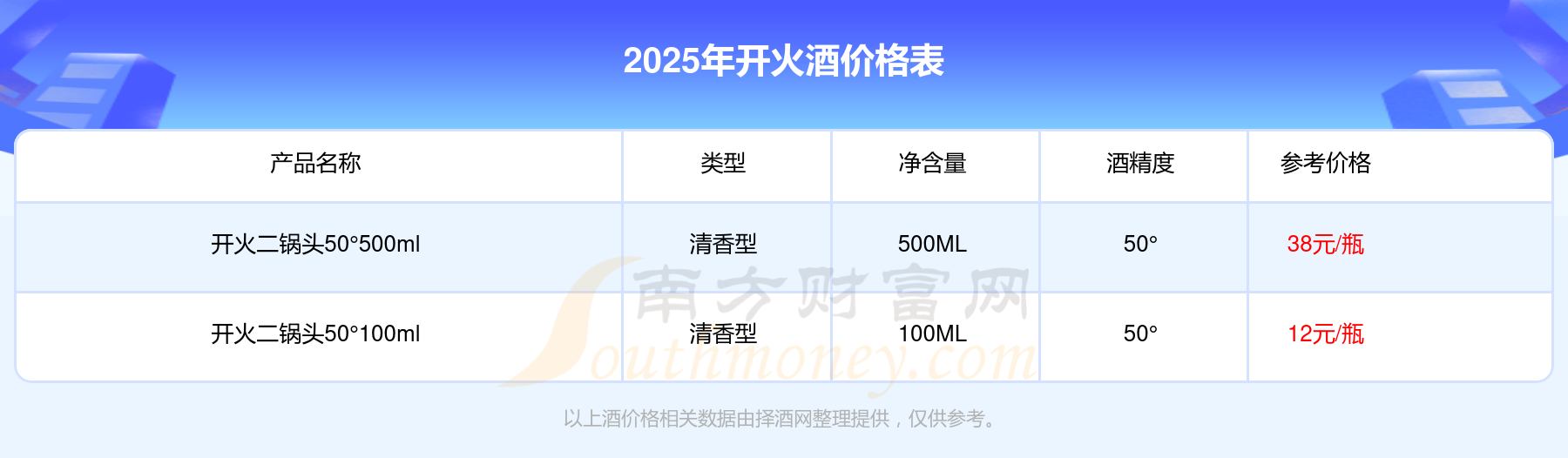 2025開火酒最新價格:開火二鍋頭50°500ml參考價38元/瓶、開火二鍋頭50°100ml參考價12元/瓶。