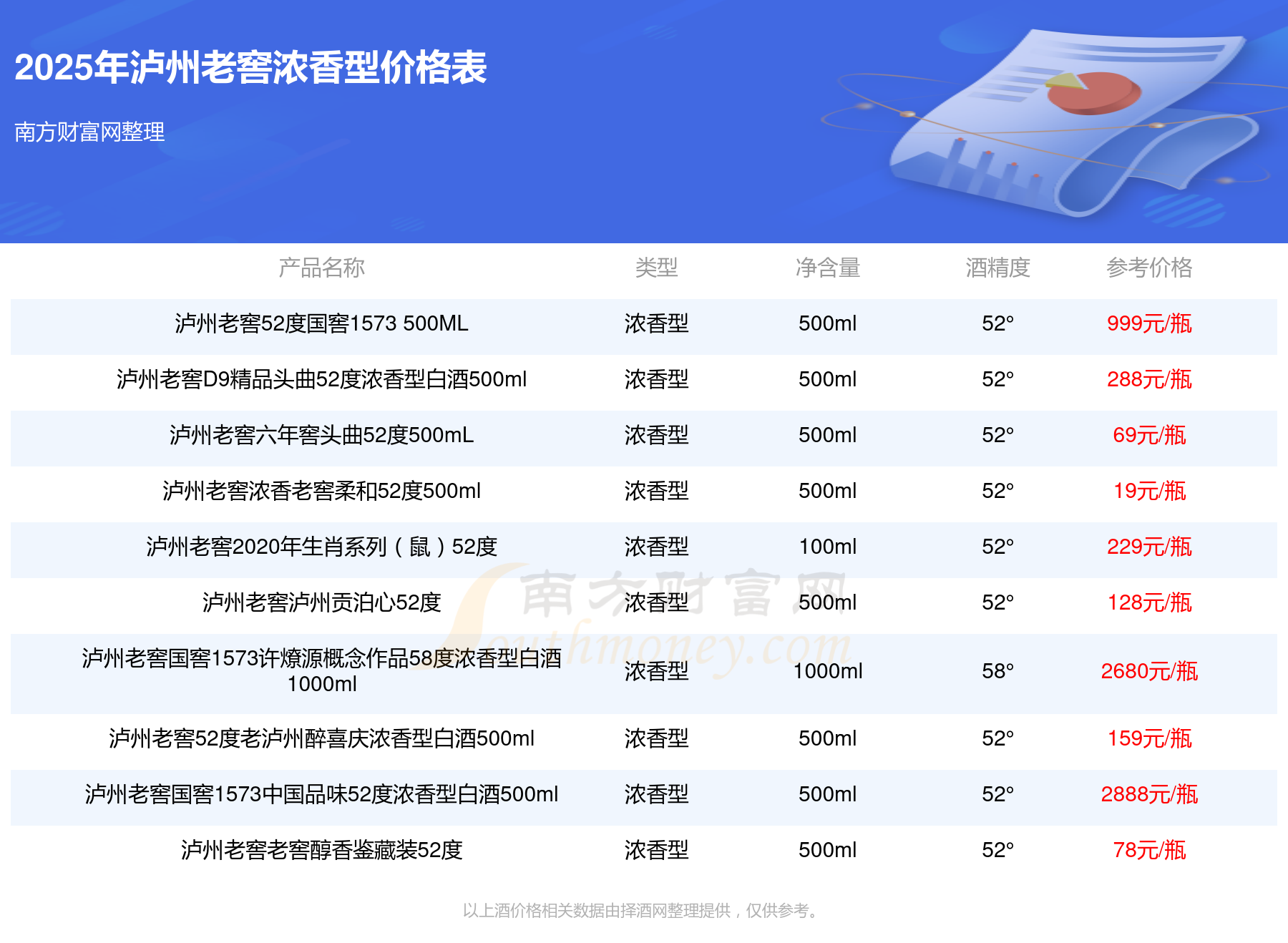 2025瀘州老窖濃香型酒最新價(jià)格: