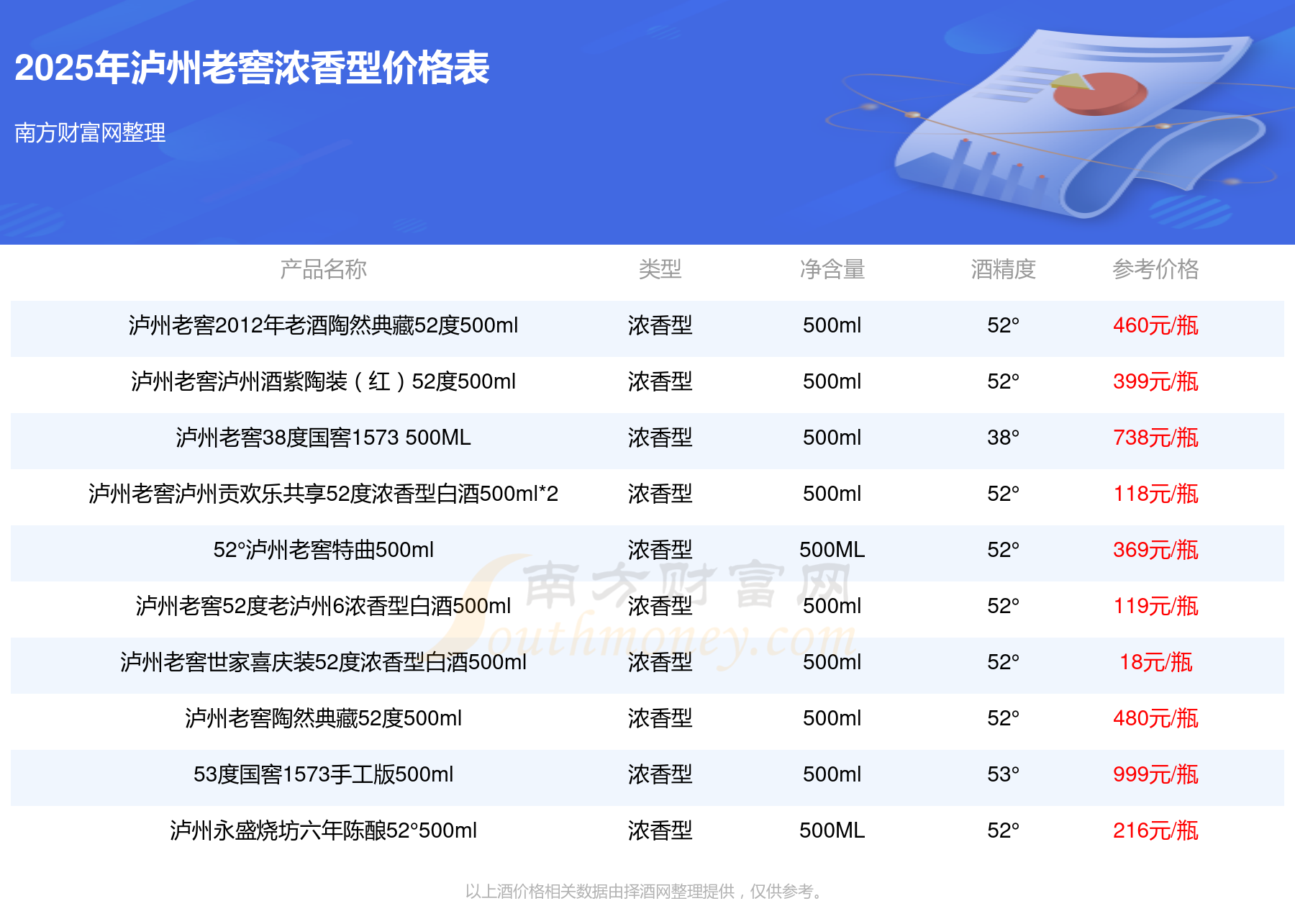 瀘州老窖濃香型酒最新價(jià)格2025: