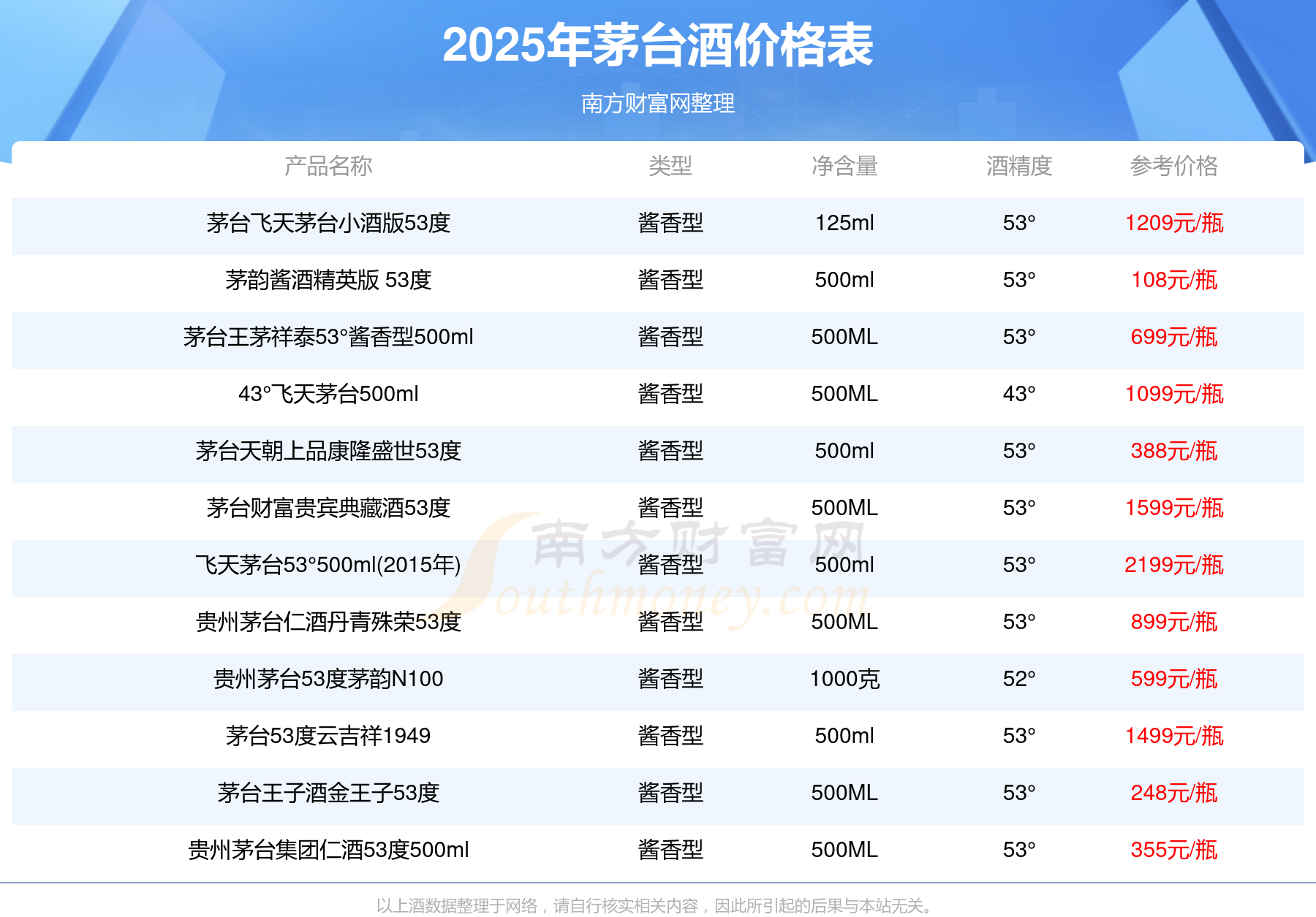 2025年,華茅鑒藏 醬香型白酒 3L 53°、53度五星茅臺生肖酒丁酉雞年、貴州茅臺己亥豬年生肖酒53°500ml等茅臺酒價格如下:
