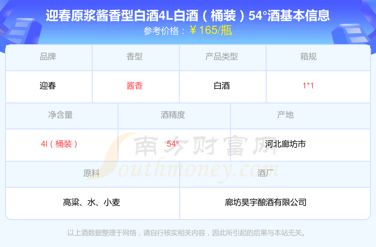 迎春原漿醬香型白酒4L白酒(桶裝)54°基本信息