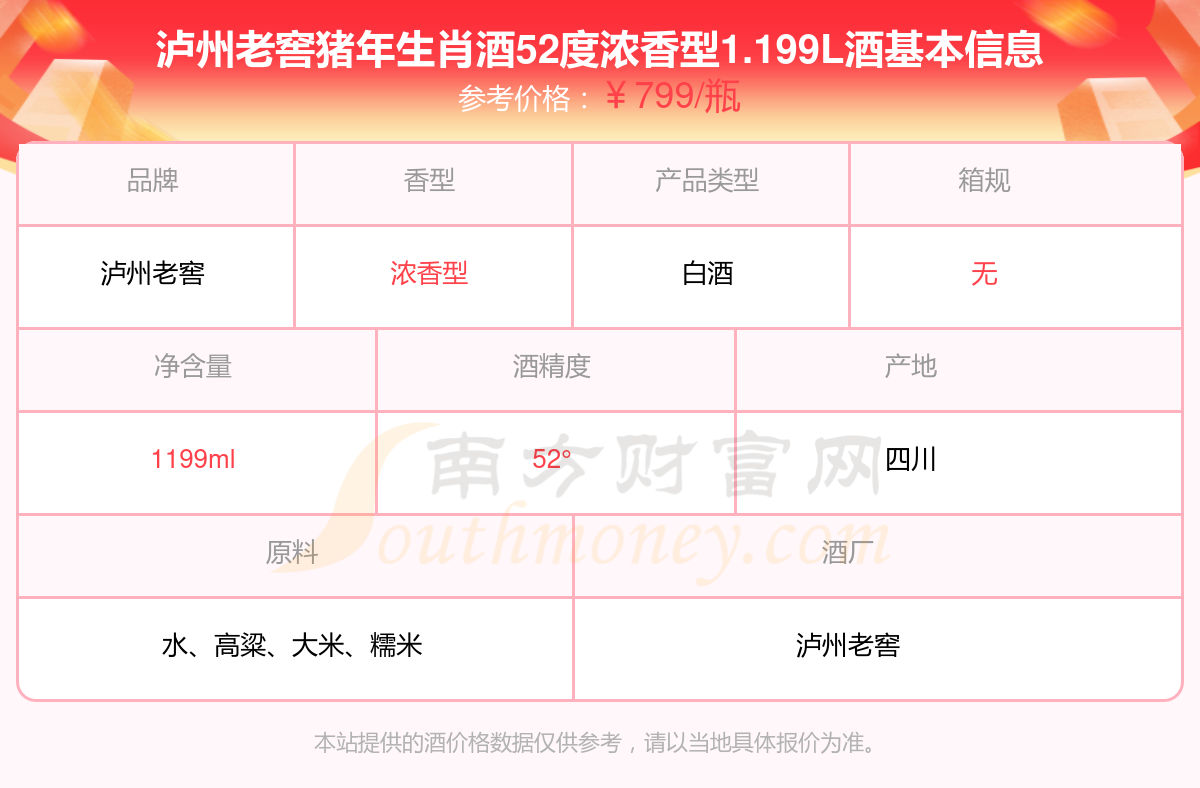 瀘州老窖豬年生肖酒52度濃香型1.199L基本信息