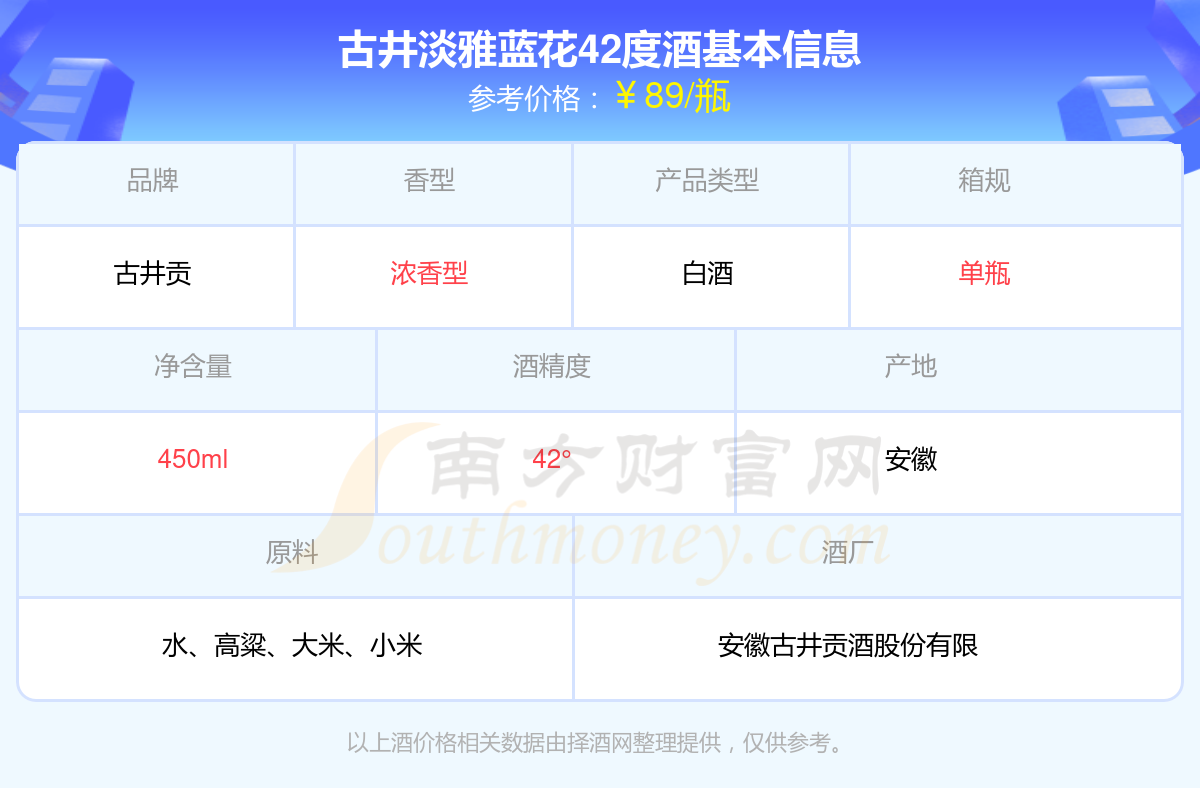 古井淡雅藍花42度基本信息