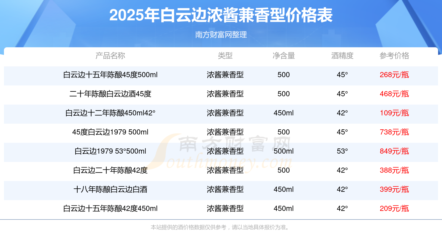 白云邊濃醬兼香型酒最新價(jià)格2025: