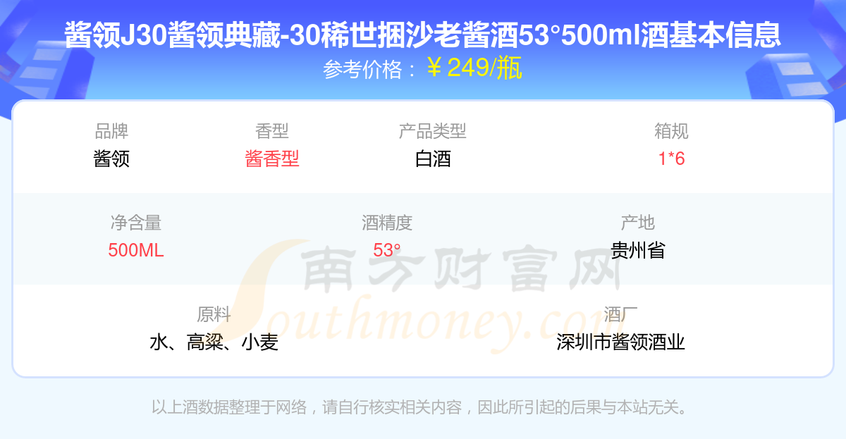 醬領(lǐng)J30醬領(lǐng)典藏-30稀世捆沙老醬酒53°500ml基本信息