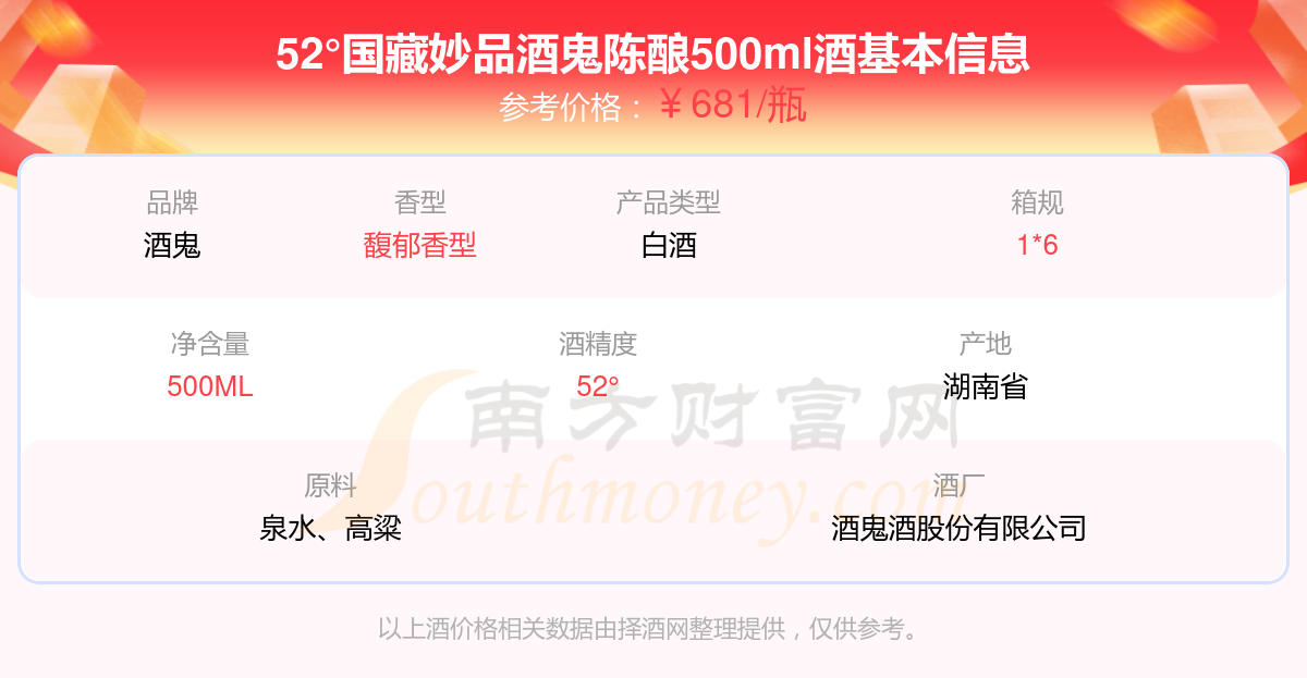 52°國藏妙品酒鬼陳釀500ml基本信息