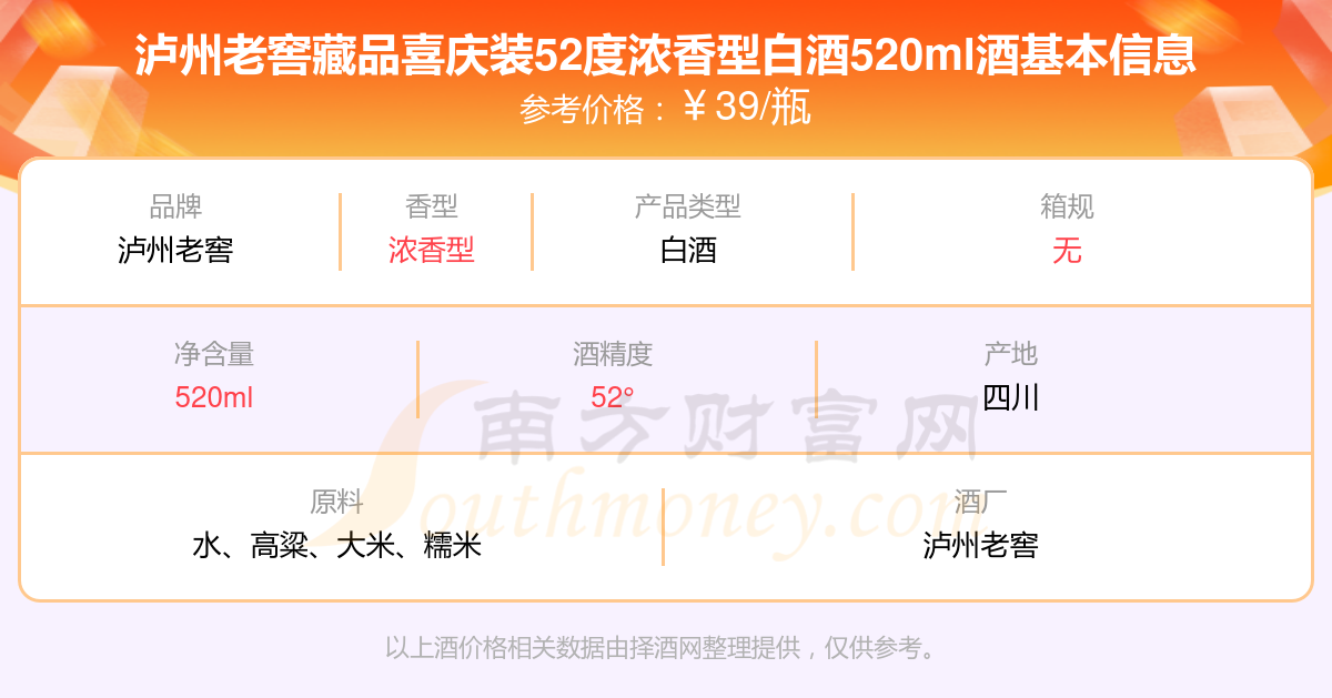 瀘州老窖藏品喜慶裝52度濃香型白酒520ml基本信息