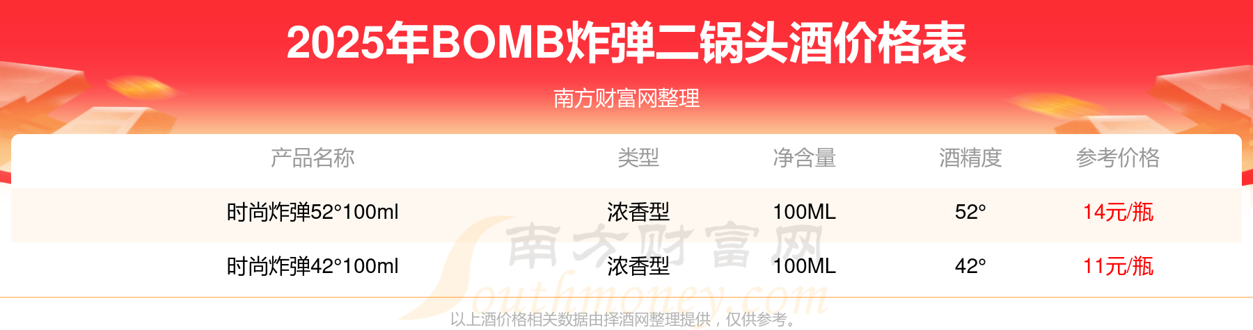 2025BOMB炸彈二鍋頭酒最新價(jià)格: