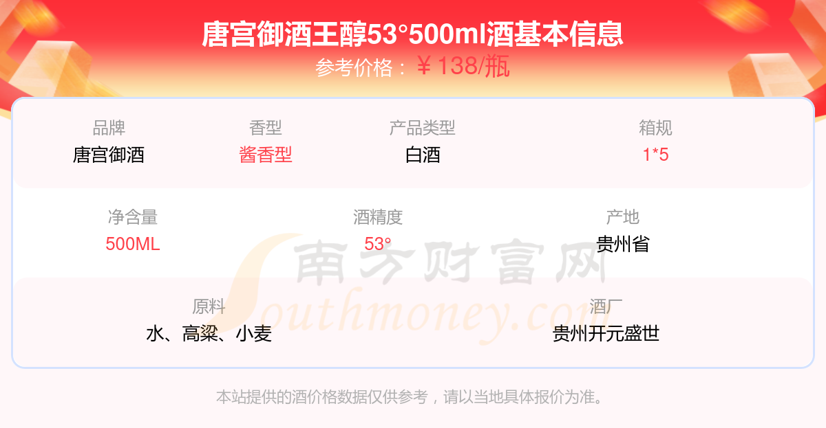 唐宮御酒王醇53°500ml基本信息