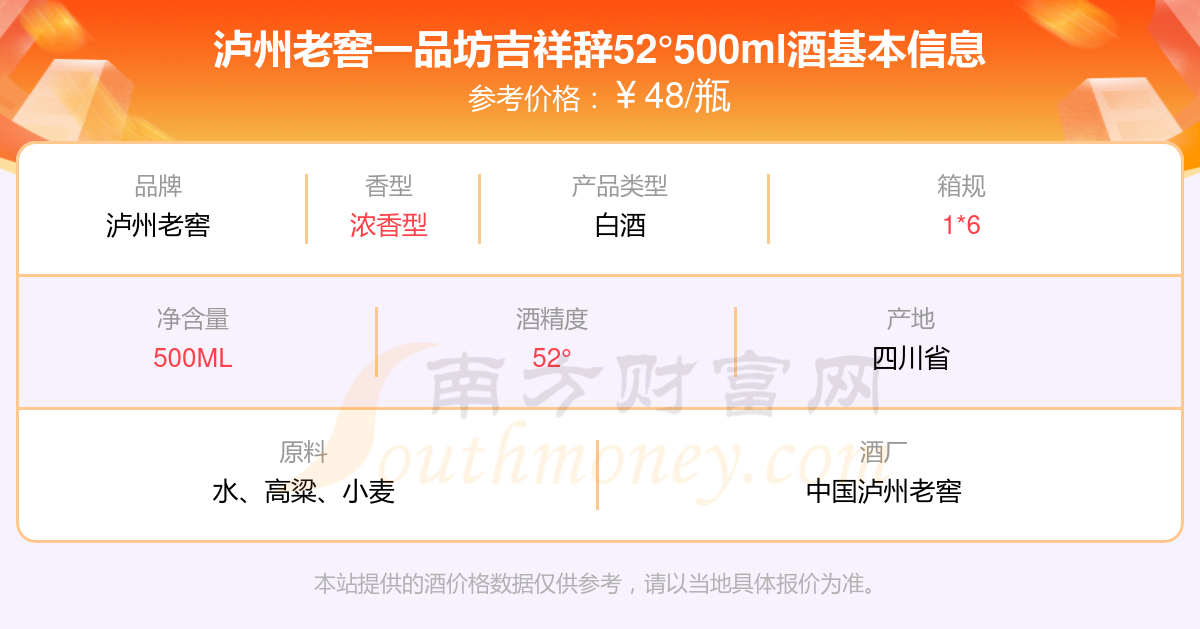 瀘州老窖一品坊吉祥辭52°500ml基本信息