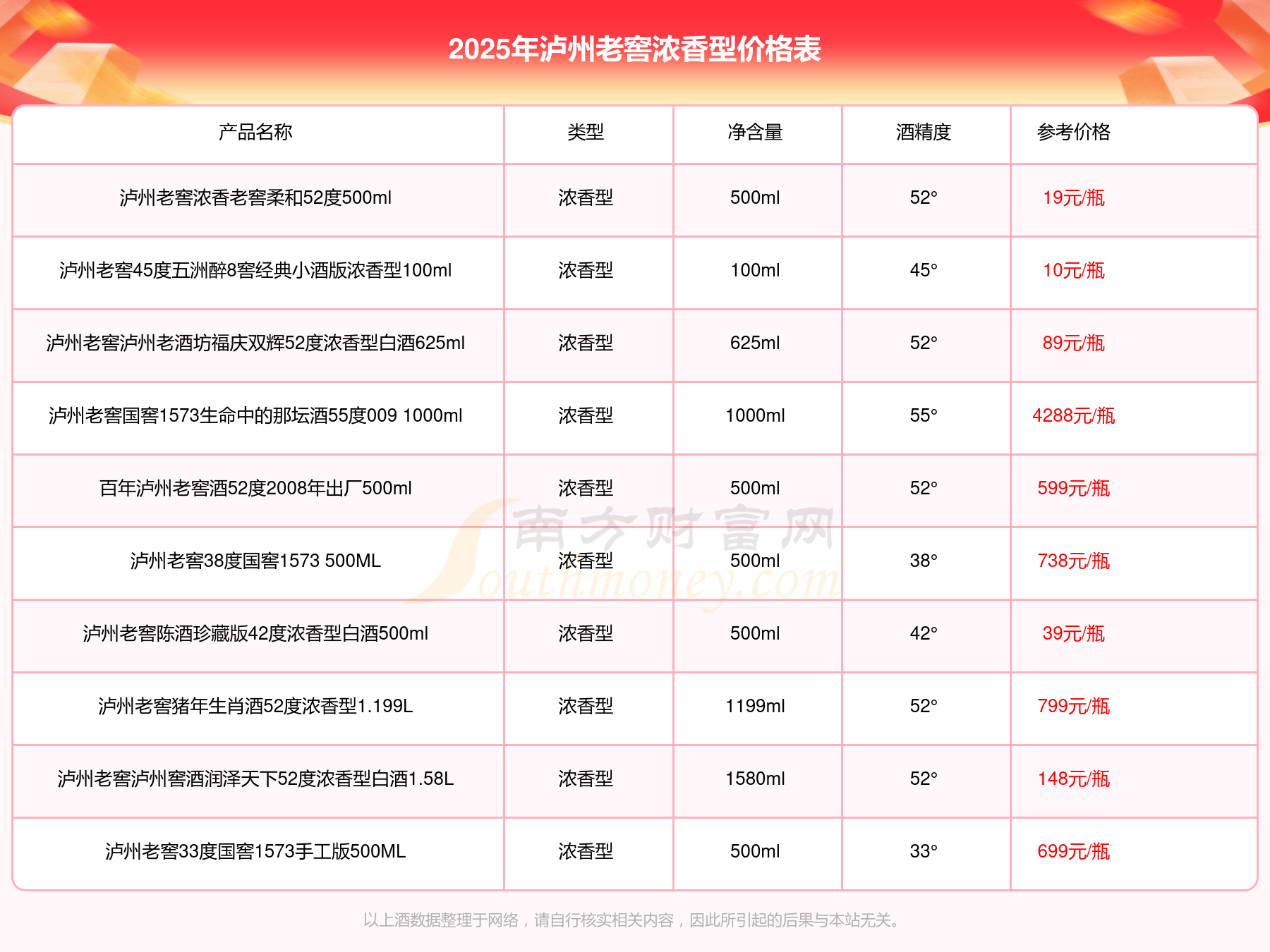 2025年瀘州老窖濃香型酒瀘州老窖國窖1573春釀鼠兆豐年E 55度、瀘州老窖國窖1573生命中的那壇酒55度014、瀘州老窖國窖1573春釀鼠兆豐年A 55度等最新價格如下: