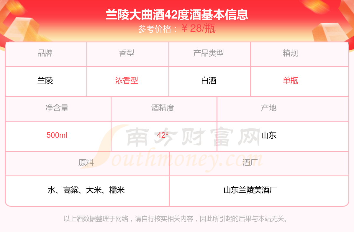 蘭陵大曲酒42度基本信息