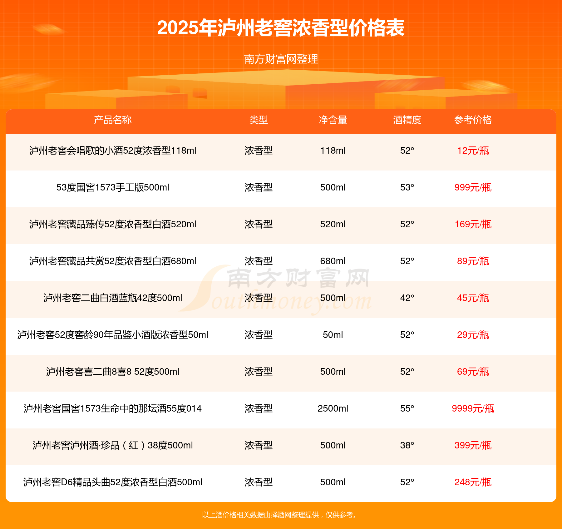 2025瀘州老窖濃香型酒最新價(jià)格:瀘州老窖國(guó)窖1573春釀鼠兆豐年E 55度參考價(jià)17999元/瓶、瀘州老窖國(guó)窖1573生命中的那壇酒55度014參考價(jià)9999元/瓶、瀘州老窖國(guó)窖1573春釀鼠兆豐年A 55度參考價(jià)5088元/瓶。