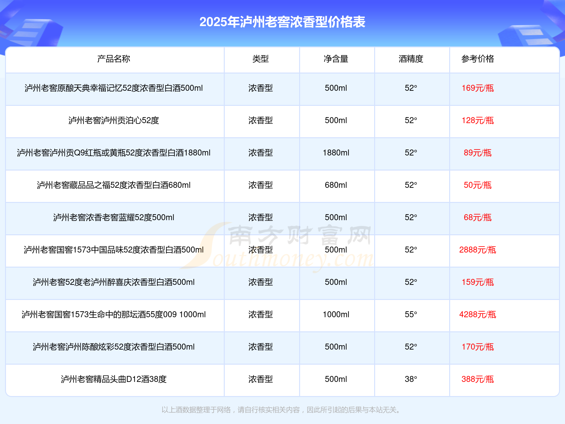2025年瀘州老窖濃香型酒瀘州老窖國窖1573春釀鼠兆豐年E 55度、瀘州老窖國窖1573生命中的那壇酒55度014、瀘州老窖國窖1573春釀鼠兆豐年A 55度、瀘州老窖國窖1573生命中的那壇酒55度013濃香型白酒1000ml、瀘州老窖國窖1573生命中的那壇酒55度009 1000ml、瀘州老窖國窖1573中國品味52度濃香型白酒500ml等最新價格如下: