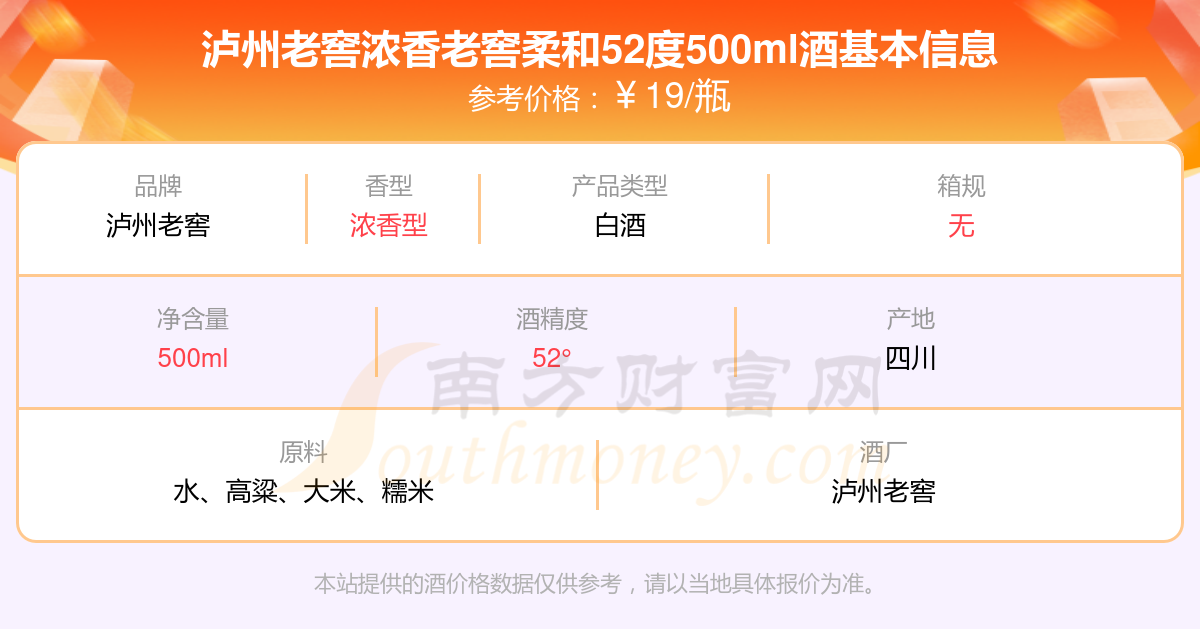 瀘州老窖濃香老窖柔和52度500ml基本信息