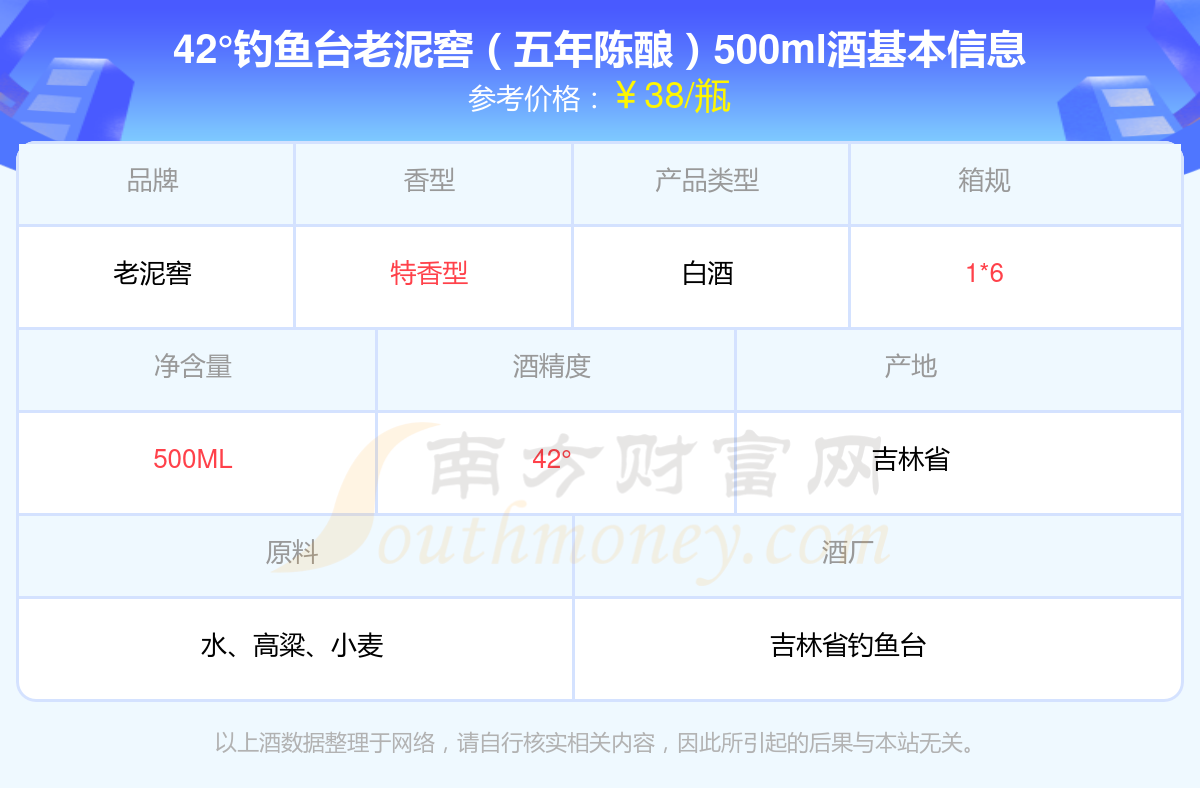 42°釣魚臺老泥窖(五年陳釀)500ml基本信息