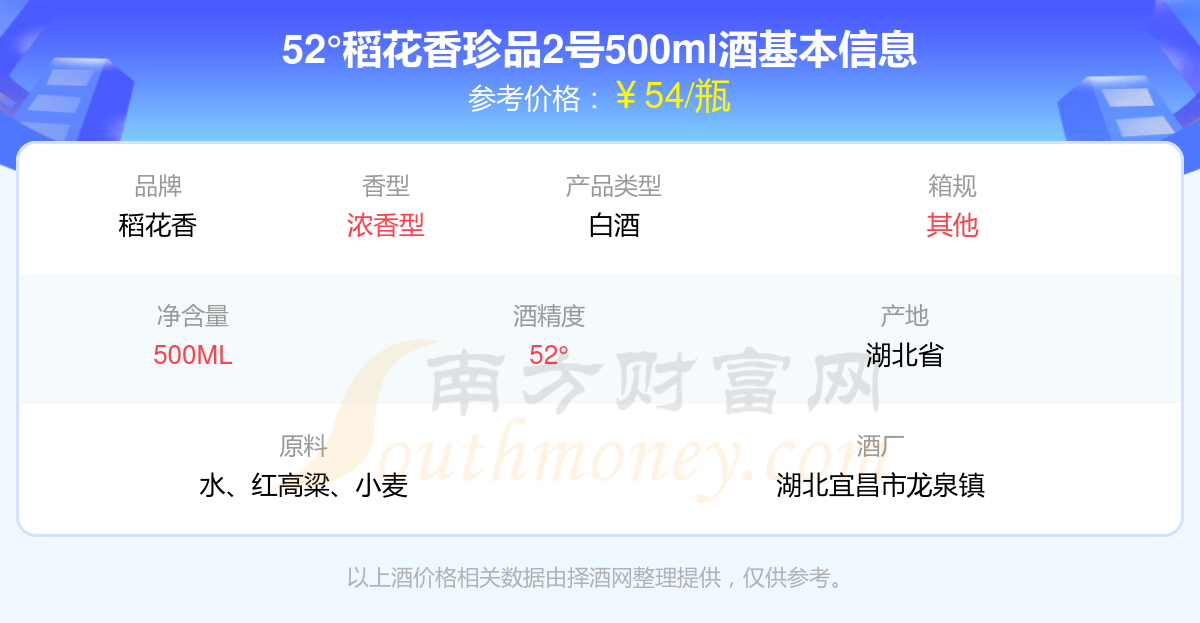 52°稻花香珍品2號500ml基本信息