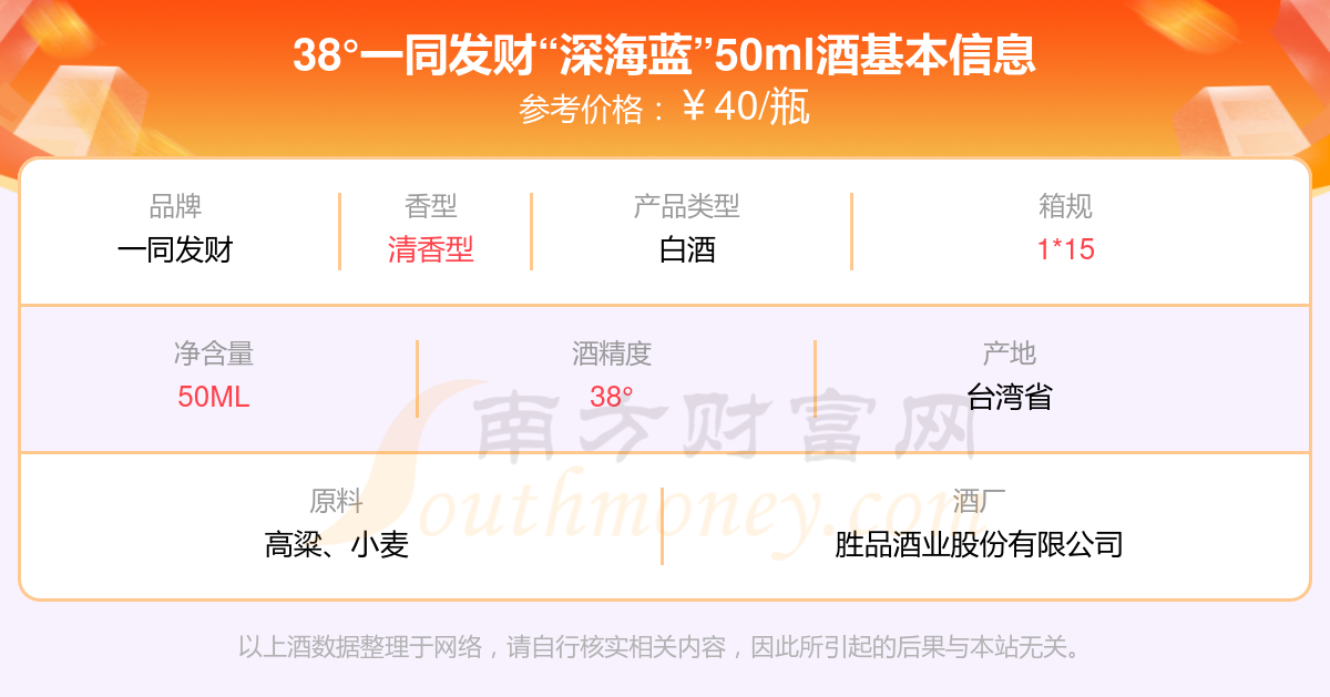 38°一同發(fā)財“深海藍”50ml基本信息