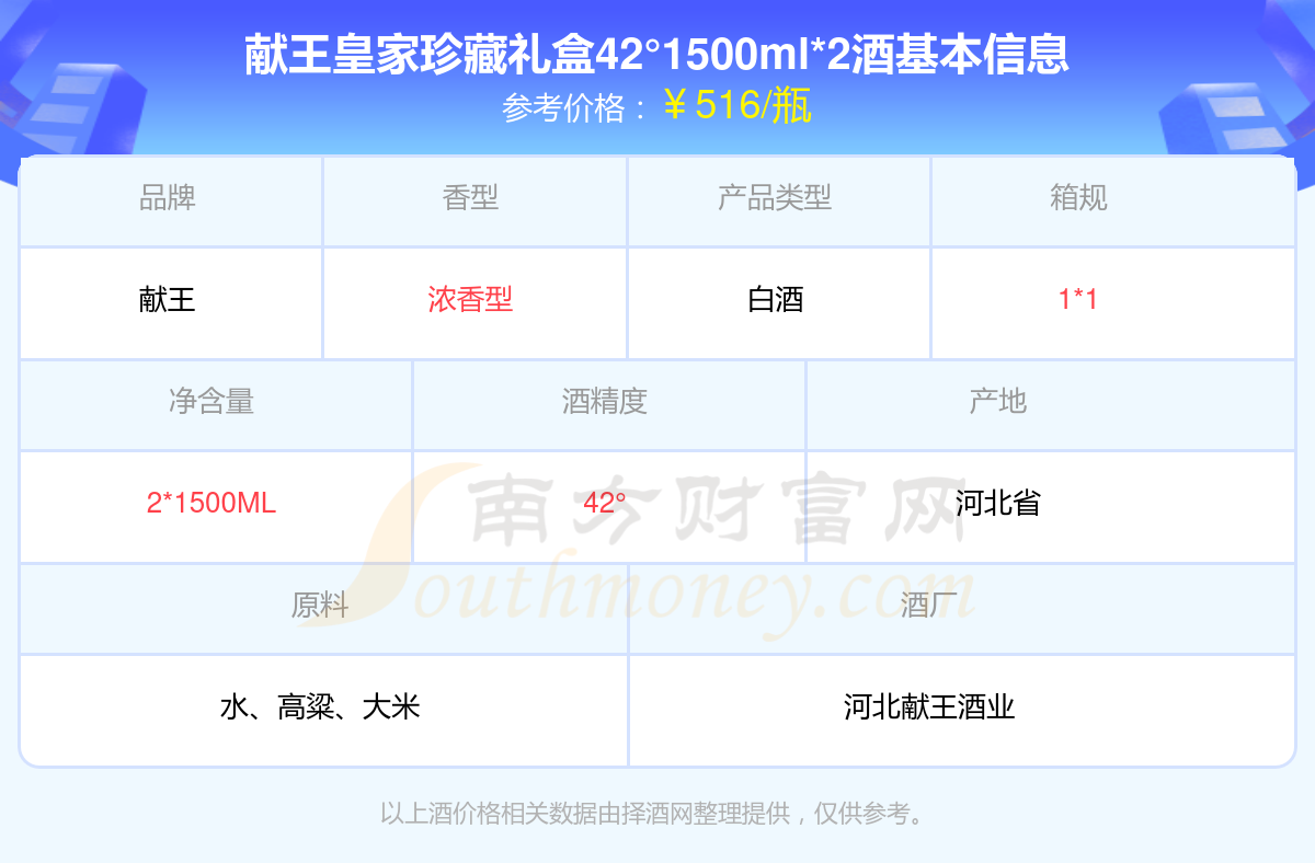 獻(xiàn)王皇家珍藏禮盒42°1500ml*2基本信息