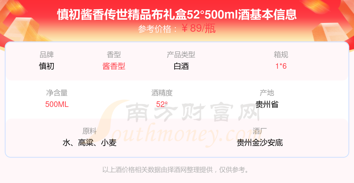 慎初醬香傳世精品布禮盒52°500ml基本信息