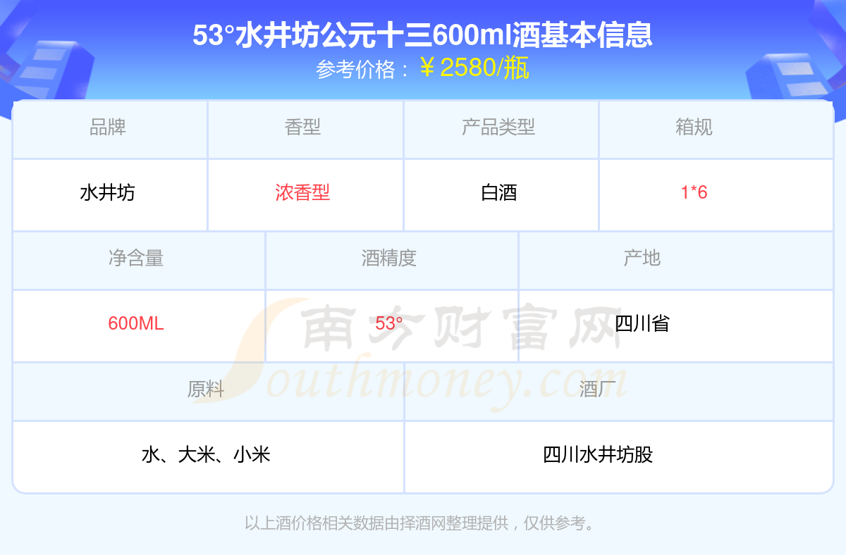 53°水井坊公元十三600ml基本信息