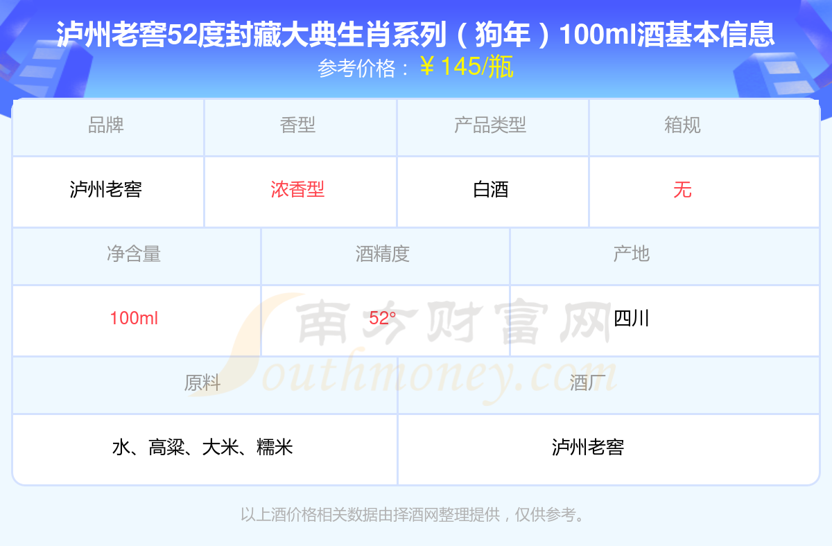 瀘州老窖52度封藏大典生肖系列(狗年)100ml基本信息