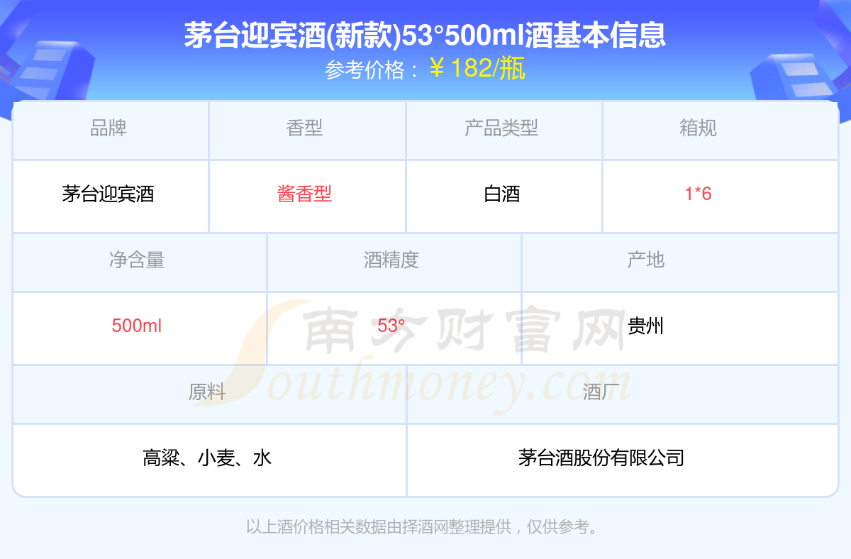 茅臺(tái)迎賓酒(新款)53°500ml基本信息