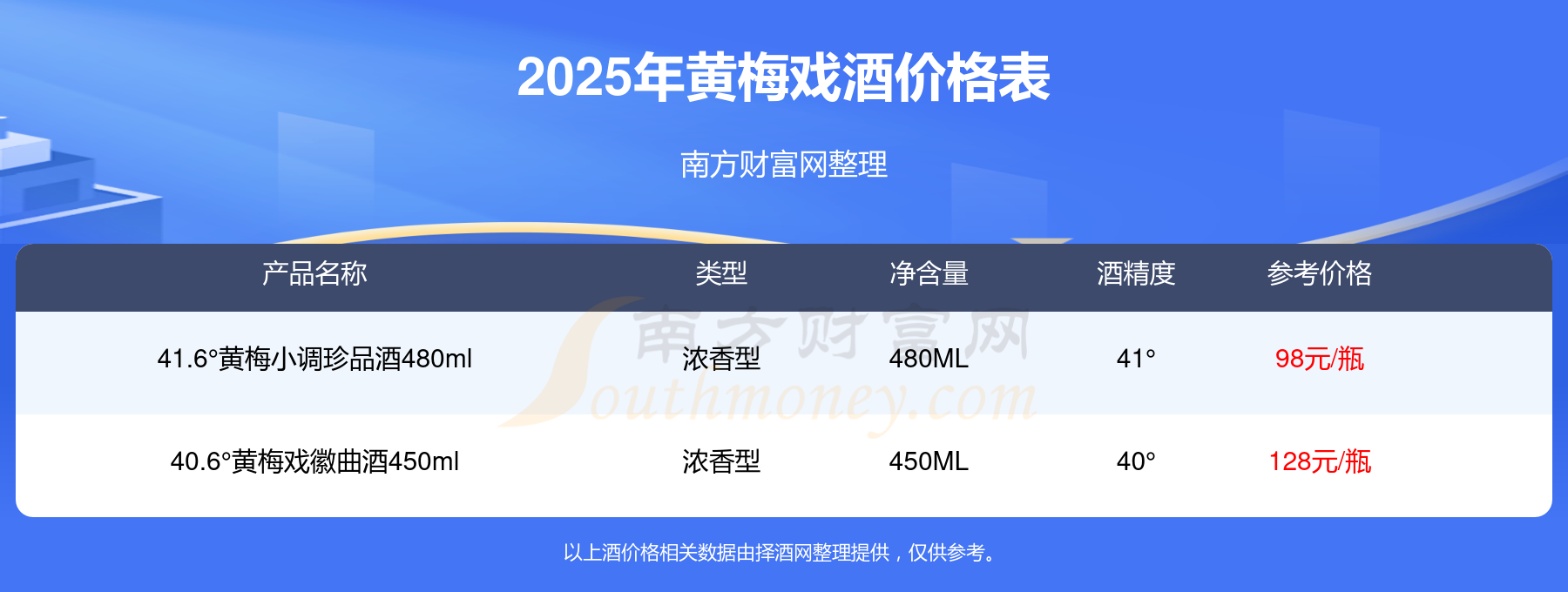 40.6°黃梅戲徽曲酒450ml參考價128元/瓶、41.6°黃梅小調(diào)珍品酒480ml參考價98元/瓶。