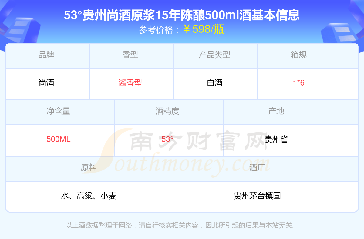 53°貴州尚酒原漿15年陳釀500ml基本信息