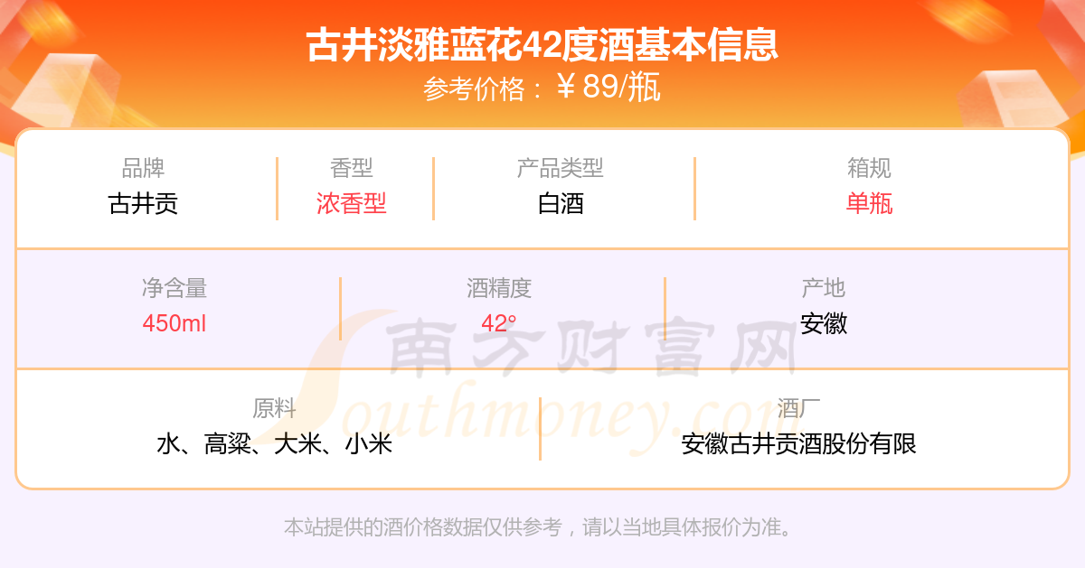 古井淡雅藍花42度基本信息