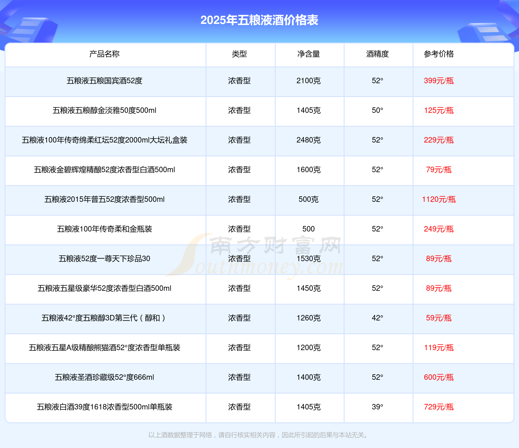 目前,五糧液酒價(jià)格最高的酒為五糧液百年世博世紀(jì)榮耀紀(jì)念酒60°999ml,參考價(jià)26980元/瓶,而五糧液酒價(jià)格最低的是五糧液干一杯小瓶46度,參考價(jià)16元/瓶,價(jià)格高低差為26964元/瓶。