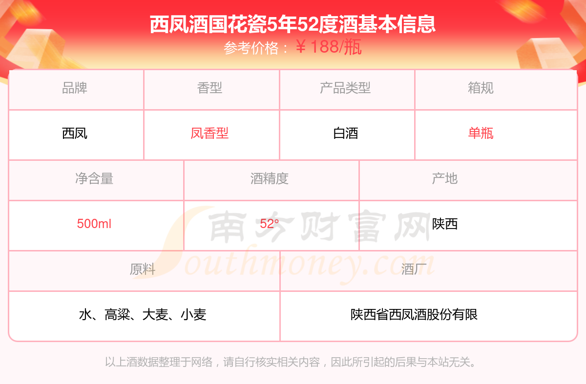 西鳳酒國花瓷5年52度基本信息