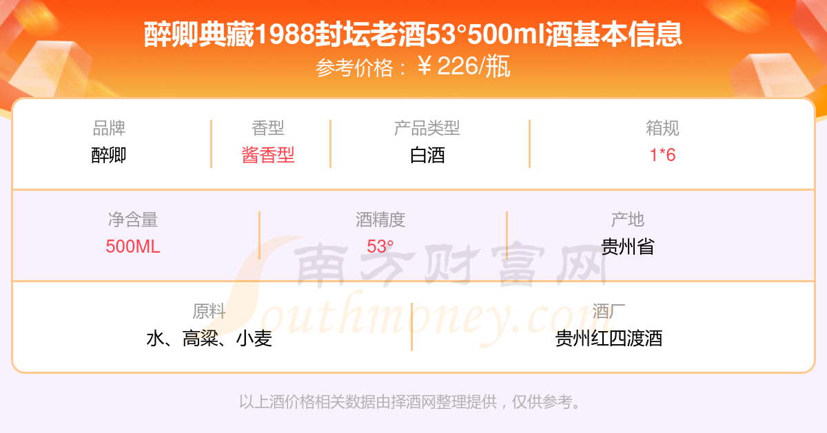 醉卿典藏1988封壇老酒53°500ml基本信息